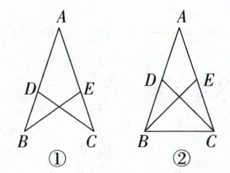 14. (10分)(2025·哈尔滨模拟)点 D,E 分别在 AB,AC 上,连接 BE,CD,$AD= AE,BD= CE.$