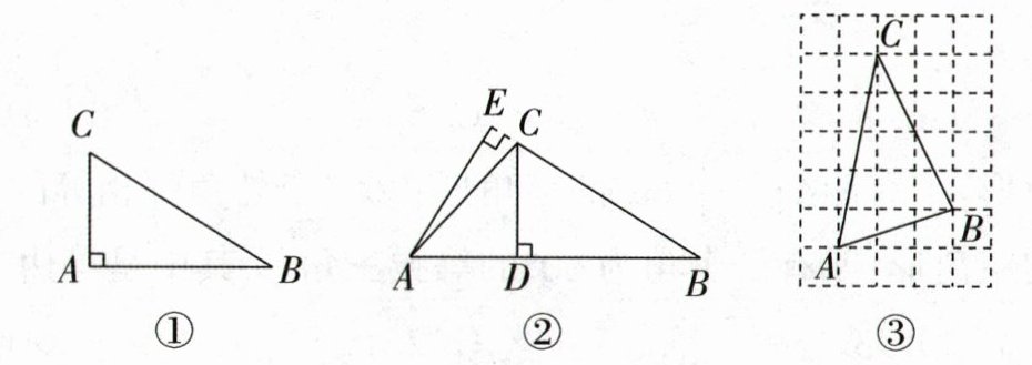 ②如图③,在给定的正方形网格中,$△ABC$的三个顶点均为格点,请你画出$△ABC$的高 BH.