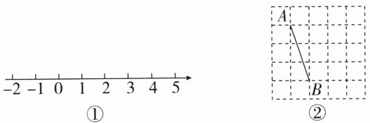 (2) 正方形网格中的每个小正方形边长都是 1,在图②中以 $ AB $ 为一边,画一个边长均为无理数的直角三角形.(说明:直角三角形的顶点均为小正方形的顶点)