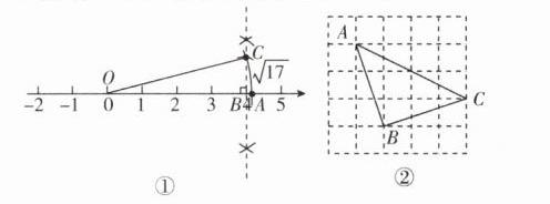 22. (6 分) 新趋势 尺规作图 (1) 在如图①的数轴上作出表示 $ \sqrt{17} $ 的点.(不写作法,保留作图痕迹)