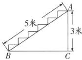 19. (6 分) 如图, 要在一个高为 3 米、长为 5 米的楼梯表面铺地毯, 若楼梯宽为 1.5 米, 地毯的价格为 20 元/平方米, 请你为该楼梯铺地毯做出预算.