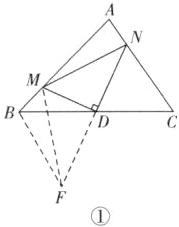 (2)延长ND至点F,使$FD=ND$,连接BF,MF,如图①所示.同
