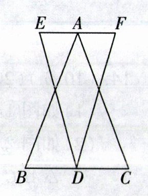 14. (12分)如图,在$△ABC$中,$AB = AC$,D是BC的中点,过A点的直线$EF// BC$,且$AE = AF$,求证:$DE = DF$.