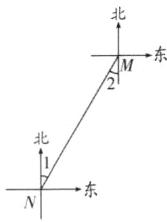 3.如图,从N地观测M地,发现M地在N地的北偏东$30^{\circ }29'$方向上,则从M地观测N地,可知N地在M地的 (