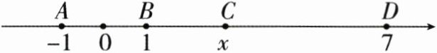1. (2024·石家庄模拟)如图,数轴上点 $ A,B,C,D $ 对应的数分别是 $-1,1,x,7$, 点 $ C $ 在线段 $ BD $ 上且不与端点重合,若线段 $ AB,BC,CD $ 能围成三角形,则 $ x $ 可能是 (