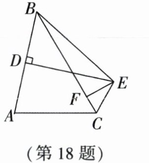 18. 如图, 在 $ \triangle ABC $ 中, $ D $ 为 $ AB $ 中点, $ DE \perp AB, \angle ACE+\angle BCE= 180^{\circ}, EF \perp BC $ 交 $ BC $ 于 $ F,AC= 8,BC= 12 $, 则 $ BF $ 的长为______.