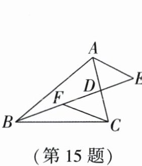 15. 如图,已知 $ BD $ 是 $ \triangle ABC $ 的中线, $ CF $ 是 $ \triangle BCD $ 的中线, $ AE // CF $ 交 $ BD $ 的延长线于点 $ E $. 若 $ \triangle ADE $ 的面积为 3, 则 $ \triangle ABC $ 的面积是______