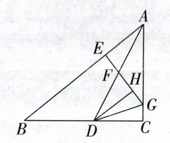 21. (8分)如图,在△ABC中,D为边BC上一点,E为边BA上一点,且AE= CD,连接AD,F为AD的中点.连接EF并延长,交AC于点G,在FG上截取点H,使FH= FE,连接GD,HD,若HG= CG.