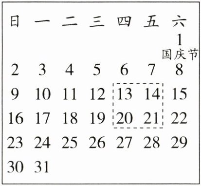 22.(8分)如图为某年10月的月历表,在其中用一个方框圈出4个数(如图中虚线框所示),设这4个数从小到大依次为a、b、c、d.
