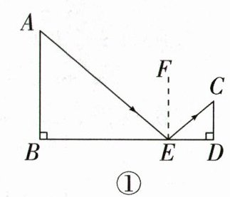 25. (12分)【问题背景】由光的反射定律知:反射角等于入射角(如图①,即$∠CEF= ∠AEF$).小军测量某建筑物高度的方法如下:在地面点E处平放一面镜子,经调整自己位置后,在点D处恰好通过镜子看到建筑物AB的顶端A.经测得,小军的眼睛离地面的距离$CD= 1.7m,BE= 20m,DE= 2m$,求建筑物AB的高度.
