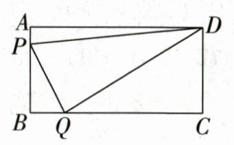 (2)不能.理由如下:设运动x s后△PDQ的面积为32 cm²,则AP=x cm,BP=(8-x)cm,BQ=2x cm,CQ=(16-2x)cm,S△PDQ=S矩形ABCD-S△ADP-S△CDQ-S△BPQ=AB·BC$\frac{-1}{2}$×AD·AP$\frac{-1}{2}$×CD·CQ$\frac{-1}{2}$×BP·BQ=8×16$\frac{-1}{2}$×16x$\frac{-1}{2}$×8(16-2x)$\frac{-1}{2}$×(8-x)·2x=x²-8x+64=32,即x²-8x+64=32,