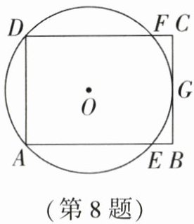 8.(无锡中考)如图,在矩形ABCD中,G是BC的中点,过A、D、G三点的⊙O与边AB、CD分别交于点E、F,给出下列说法:①AC与BD的交点是⊙O的圆心;②AF与DE的交点是⊙O的圆心;③BC与⊙O相切.其中正确说法的个数是 (
