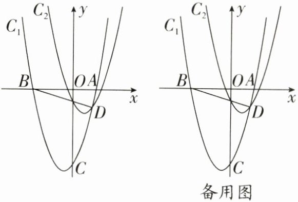 (1)将点D的坐标代入抛物线C₁的表达式y = ax² + $\frac{4}{3}$x - 4得 - 1 = a + $\frac{4}{3}$ - 4,解得a = $\frac{5}{3}$,则抛物线C₁的表达式为y = $\frac{5}{3}$x² + $\frac{4}{3}$x - 4。