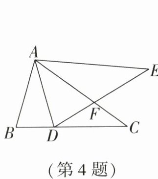 4.(扬州中考)如图,在$ \triangle A B C $中,$ A B < A C $,将$ \triangle A B C 以点 A 为中心逆时针旋转得到 \triangle A D E $,点$ D 在边 B C $上,$ D E 交 A C 于点 F $.下列结论:①$ \triangle A F E \backsim \triangle D F C $;②$ D A 平分 \angle B D E $;③$ \angle C D F = \angle B A D $.其中所有正确结论的序号是 (