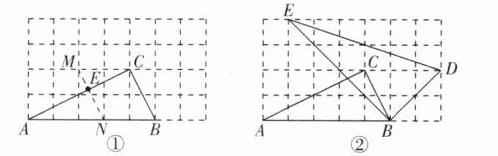 (2)在图②中作一个格点$ \triangle B D E $,使$ \triangle B D E 与 \triangle A B C $相似,且面积比为$ 8 : 5 $.