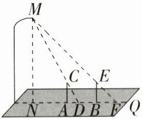 21. (8分)晚饭后,小聪和小军在社区广场散步,小聪问小军:“你有多高?”小军一时语塞.小聪思考片刻,提议用广场照明灯下的影长及地砖长来测量小军的身高.于是,两人在灯下沿直线NQ移动,如图,当小聪正好站在广场的A点(距N点5块地砖长)时,其影长AD恰好为1块地砖长;当小军正好站在广场的B点(距N点9块地砖长)时,其影长BF恰好为2块地砖长.已知广场地面由正方形地砖铺成,小聪的身高AC为1.6m,$MN⊥NQ$,$AC⊥NQ$,$BE⊥NQ$.请你根据以上信息,求出小军身高BE的长.(结果精确到0.01m)