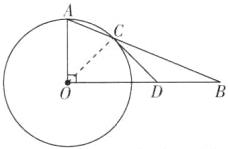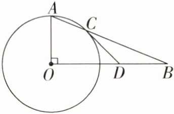 19. (8分)(2024·宿迁模拟)如图,在$Rt\triangle AOB$中,$\angle AOB= 90^{\circ}$,以点$O$为圆心,$OA长为半径的圆交AB于点C$,点$D在边OB$上,且$CD= BD$.