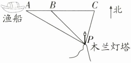 记录二:上午8时30分,渔船到达木兰灯塔$P北偏西45^{\circ}方向上的B$处.