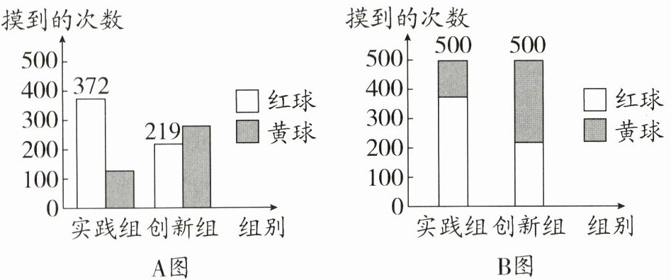 实践组摸到黄球的频率小于创新组摸到黄球的频率.(答案不唯一)