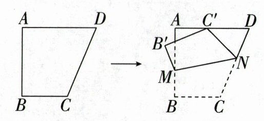 折叠四边形纸片 $ABCD$,使得点 $C$ 的对应点 $C'$ 始终落在 $AD$ 上,点 $B$ 的对应点为 $B'$,折痕与 $AB$、$CD$ 分别交于点 $M$、$N$。