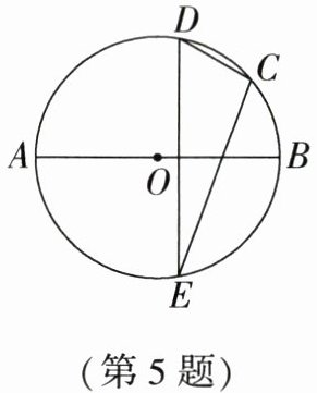 5. (贵港中考)如图,点$A$、$B$、$C$、$D均在\odot O$上,直径$AB = 4$,点$C是\overgroup{BD}$的中点,点$D关于AB对称的点为E$,若$\angle DCE = 100^{\circ}$,则弦$CE$的长是 ( )