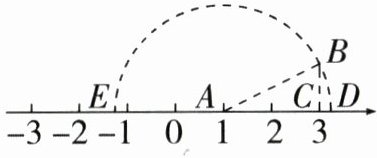 14.(8分)新趋势 过程性学习 如图,点A与点C表示的数分别为1和3,宸宸同学在数轴上以点C为直角顶点作$Rt△ABC$,$BC= 1$,再以点A为圆心,AB长为半径画圆,交数轴于D、E两点,莲莲同学说:“若D、E两点表示的数分别为m和n,我发现$x= m是一元二次方程x^{2}+bx-4= 0$的一个根.”琮琮同学说:“$x= n$一定不是此方程的根.”