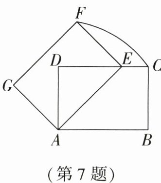 7. 如图,将矩形 $ABCD$ 绕着点 $A$ 逆时针旋转得到矩形 $AEFG$,点 $B$ 的对应点 $E$ 落在边 $CD$ 上,且 $DE = EF$,若 $AD = 3 \sqrt { 3 }$,则 $\overgroup { C F }$ 的长为 ( )