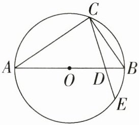 23. (8 分)如图,$AB$ 是 $\odot O$ 的直径,$C$ 为 $\odot O$ 上一点,$D$ 在 $AB$ 上,且 $A D = A C$,$CD$ 的延长线与 $\odot O$ 交于点 $E$.