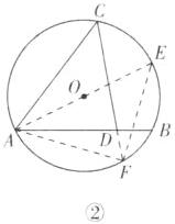 (2)如图②,$AB$ 是 $\odot O$ 的弦,$C$ 是圆上一点,点 $D$ 在 $AB$ 上,$\angle A C D = 48 ^ { \circ }$,作 $\mathrm { Rt } \triangle A E F$,使得 $\angle F A E = 42 ^ { \circ }$.