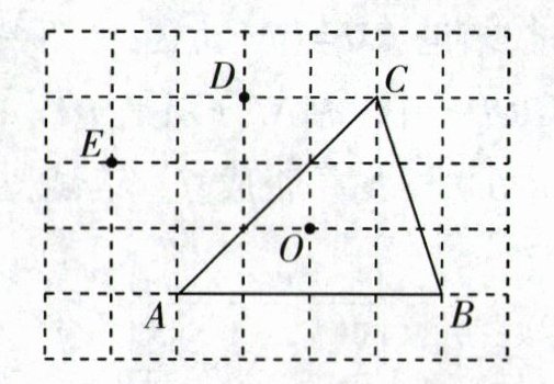 14. (玉林中考)如图,在$5 × 7$的正方形网格中,各小正方形边长均为1,点$O$、$A$、$B$、$C$、$D$、$E$均在格点上,点$O是 \triangle ABC $的外心,在不添加其他字母的情况下,则除$ \triangle ABC 外把你认为外心也是点O$的三角形都写出来______