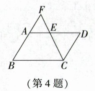 4. 如图,E是$□ ABCD$的AD边上一点,CE与BA的延长线交于点F,则下列比例式:①$\frac{FB}{CD}= \frac{FC}{CE}$;②$\frac{AE}{ED}= \frac{AF}{AB}$;③$\frac{FA}{FB}= \frac{AE}{AD}$;④$\frac{AE}{EC}= \frac{FE}{ED}$.其中一定成立的是 (