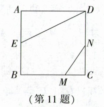 11. 如图,正方形ABCD的边长为8,$AE = EB$,$MN = 2\sqrt{5}$,线段MN的两端在CB、CD上滑动,当$CM = $