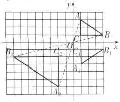 [解析]由题意知,位似中心是原点,则分两种情况:第一种,△A₂B₂C₂和△ABC在原点的同一侧,则A₂(2,6),B₂(8,2),C₂(2,2)连接各点,得△A₂B₂C₂;第二种,△A₂B₂C₂和△ABC在原点的两侧,A₂(-2,-6),B₂(-8,-2),C₂(-2,-2),连接各点,得△A₂B₂C₂,因为在网格中作图,所给网格是有范围的,所以位似放大只能画一种,如图所示,△A₂B₂C₂为所作.