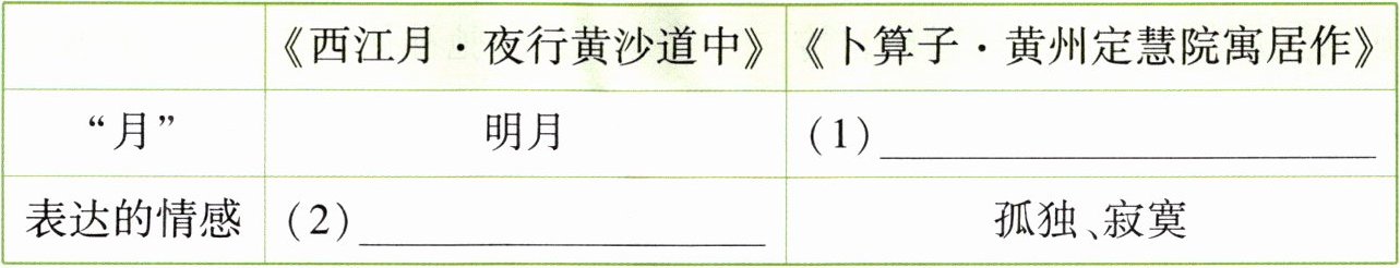 3. 这两首词都描写了“月”,但表达的情感却不同。想一想,把表格补充完整。