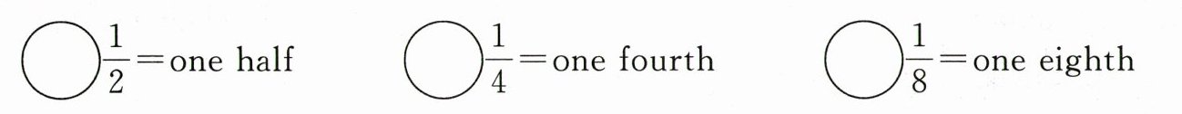 $\frac{1}{4}=$ one fourth $\frac{1}{8}=$ one eighth