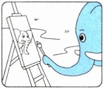 Mary is an elephant. She 1 in a zoo. She likes 2 and she can draw cute pictures.