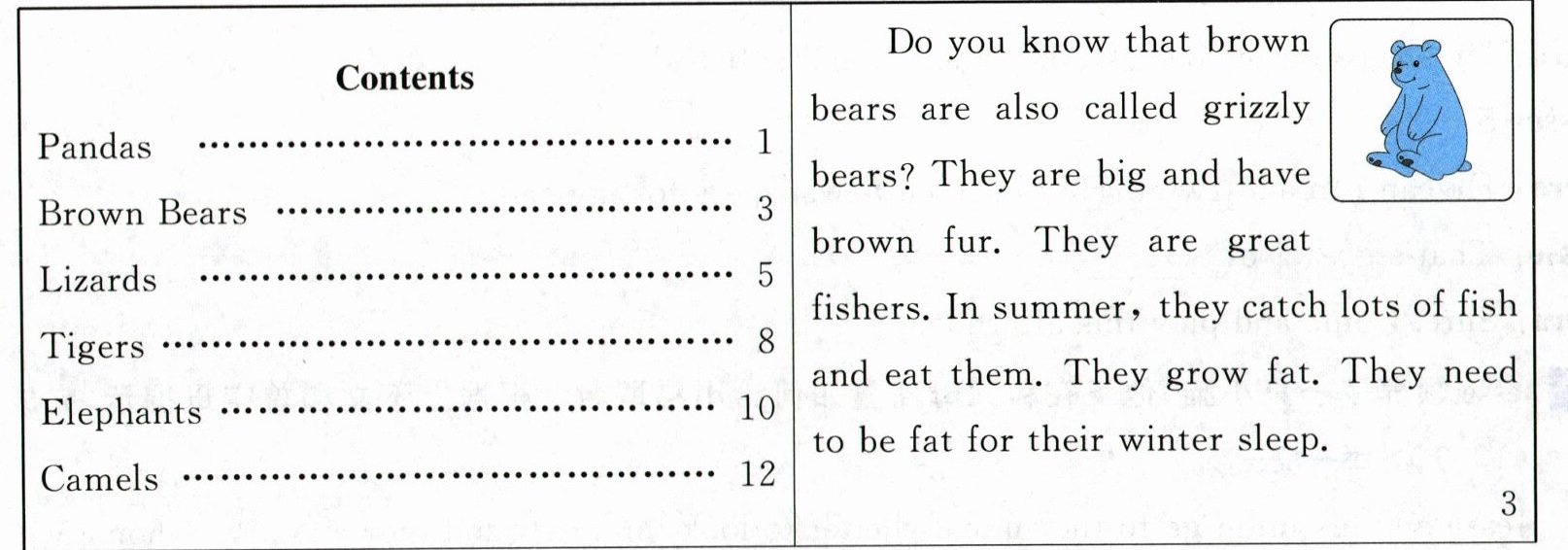 解析:结合目录和所展示的页面可知,这本书是讲动物的。故选 A。