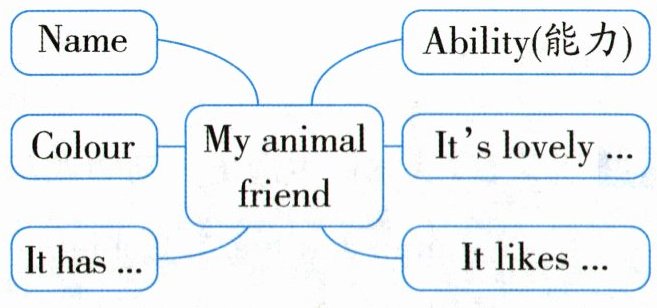 动物是人类的朋友。请根据思维导图提示,以“My animal friend”为题写一篇短文,向 Jesse 介绍你的动物朋友。