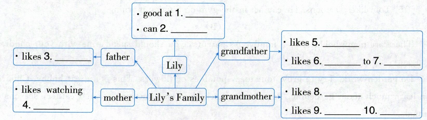 五 听录音,完成思维导图,每空一词。(听三遍,10 分)