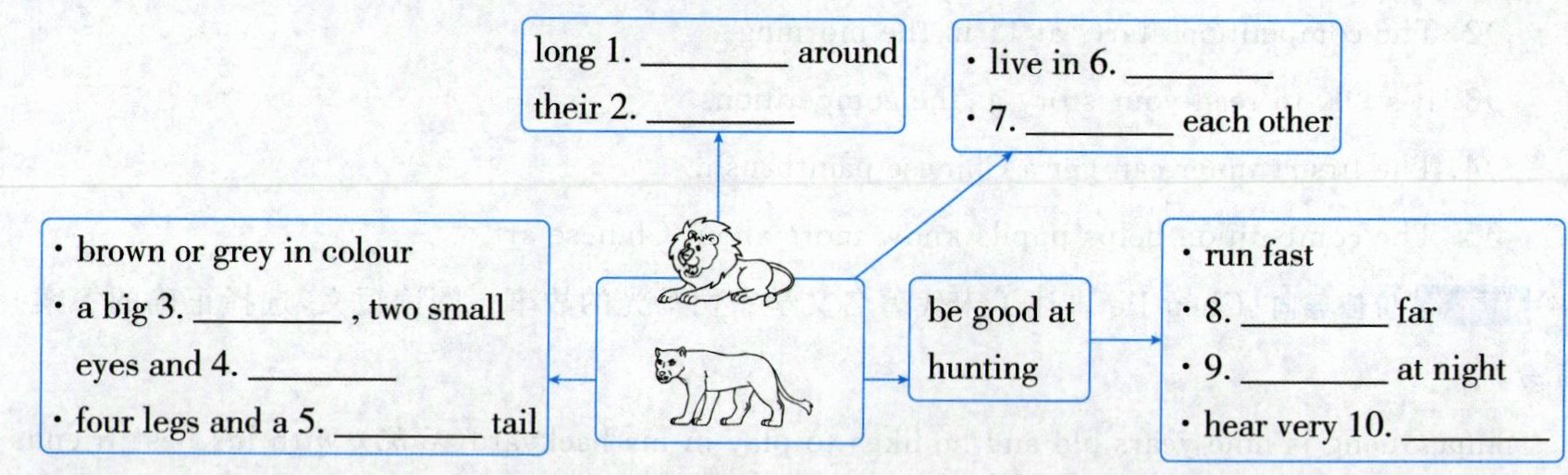 五、1. hair 2. necks 3. mouth 4. ears5. long 6. groups 7. help 8. jump9. see 10. well