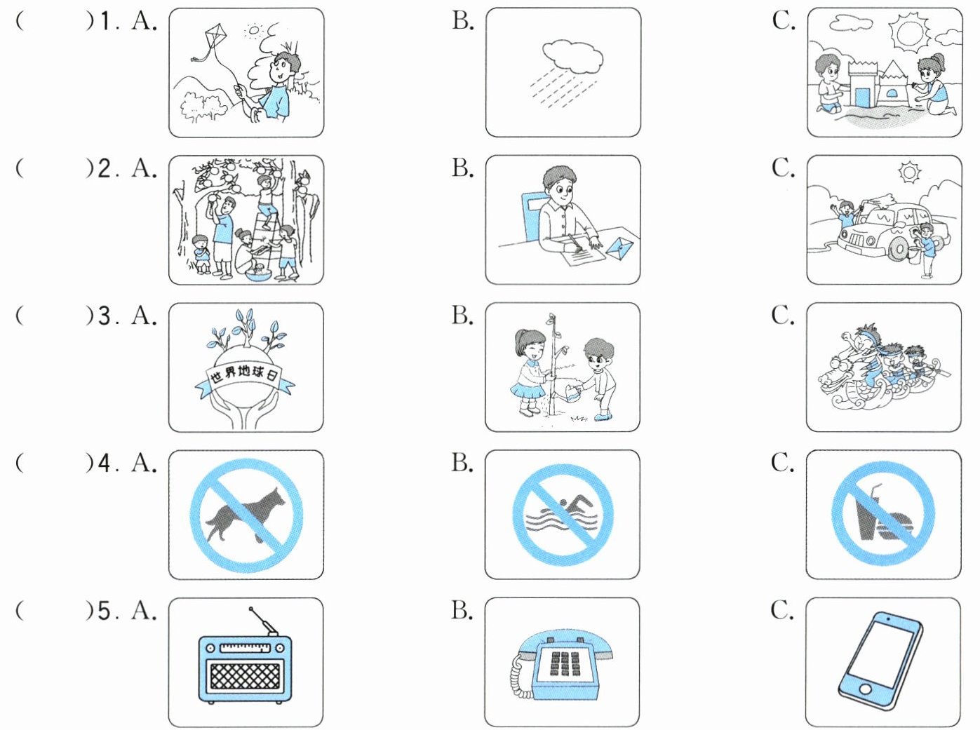 二听录音,选出与你所听内容最相符的图片。(听两遍)