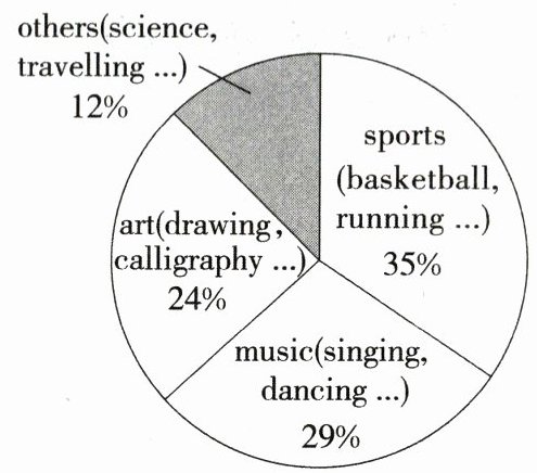 )10. 原创题 Here is a pie chart for a survey. What title(标题) might fit the chart?A.Family Members