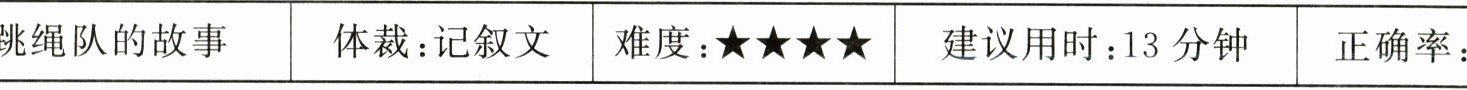 |题目:跳绳队的故事|体裁:记叙文|难度:★★★★|建议用时:13分钟|正确率: /15|