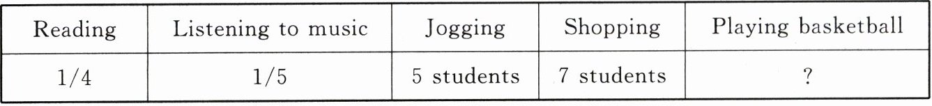 ( )8. 新考法 学科融合题 Hobbies are like the rainbow. They can make our life colourful. There are 40 students in Class 2, Grade 9. Everyone has a hobby. According to the table, there are
