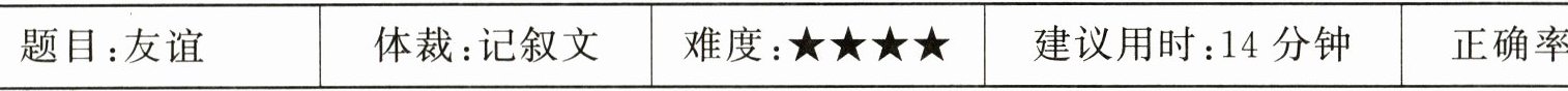 |题目:友谊|体裁:记叙文|难度:★★★★|建议用时:14分钟|正确率: /15|