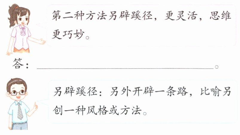 【点拨】方法一,小京花了(7×3)元,小玉花了(4×3)元,小京比小玉多花7×3-4×3=9(元)。方法二,小京比小玉多买(7-4)本练习本,这些练习本花了(7-4)×3=9(元)。