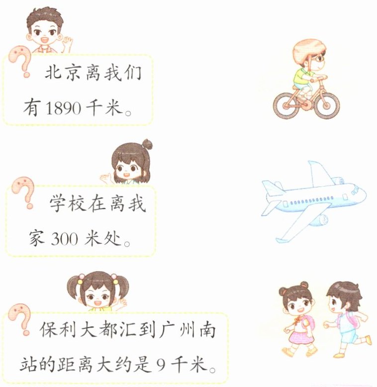 (1)C 【点拨】我们在计量比较长的距离时通常用千米作单位,两个城市之间的距离比较长$,$故选C。