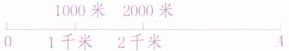【点拨】典典从起点走到第5根电线杆的时候,走了4个间隔,已知每个间隔是500米,用加法计算出4个间隔的长度和就是他走的米数,再根据1000米=1千米换算单位。