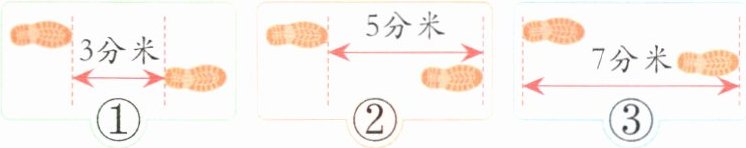 ② 5 50 50+50+50+50+50+50=300(米)答:她家距学校300米。【点拨】方法②测量的是前脚脚尖到后脚脚尖的距离,是一步的距离。观察题图可知一步长5分米。一分钟走100步,即可以走100个5分米,可以走500分米。要注意换算单位,500分米=50米。华华从家步行6分钟到学校,她每分钟走50米,她家到学校的距离是6个50米相加,也就是300米。