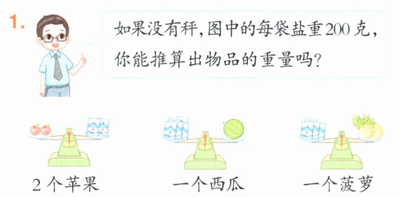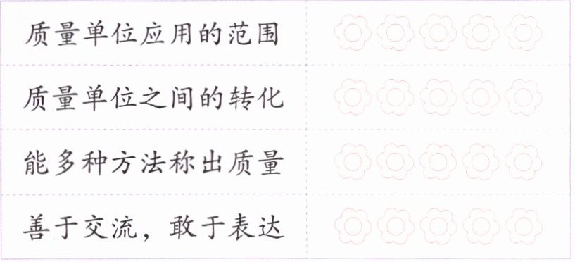 3. 能根据生活经验估计常见物品的质量,感受质量在生活中的应用。